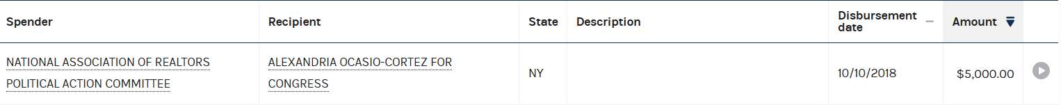 Through the National Association of Realtors PAC, Heidi Kasama directed $5,000 to New York Congresswoman Alexandria Ocasio-Cortez.