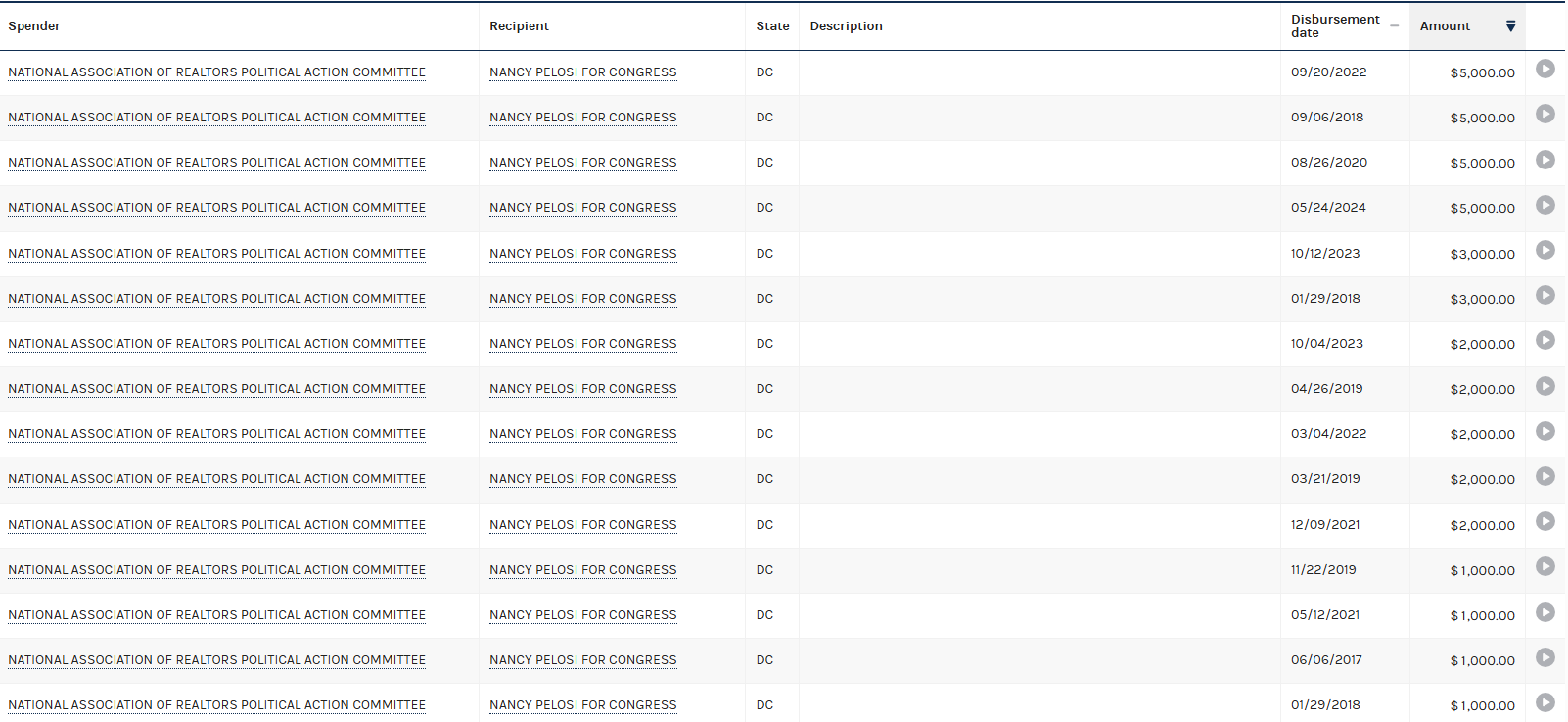 Through the National Association of Realtors PAC, Heidi Kasama directed $35,000 to California Congresswoman Nancy Pelosi.