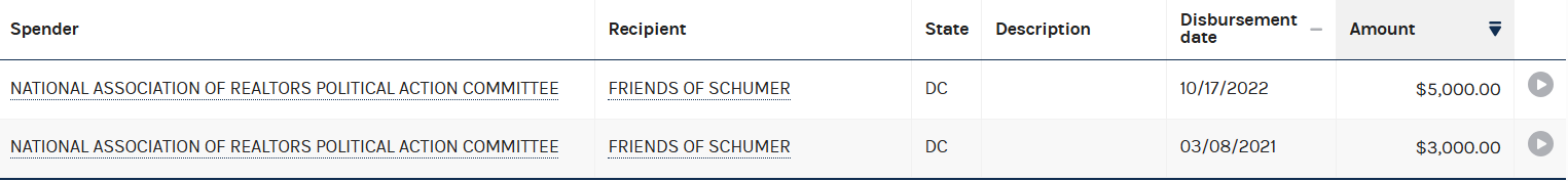 Through the National Association of Realtors PAC, Heidi Kasama directed $8,000 to New York Congressman Chuck Schumer.